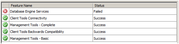 Moving one page on, you see that your install was only partially successful. I like working with clean machines. If you’re working with virtual machines, you can take a snapshot just before you install SQL in case you need to revert.