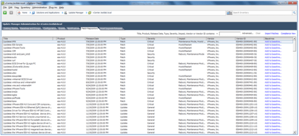Can’t I just go to http://www.vmware.com/patchmgr/download.portal, select my version of ESX, and download the patches, copy to CD and upload to the VUM repository using the VUM interface? Is there a difference? I am only interested in ESX patches. For a small environment of say 3 enclaves of 5 hosts each, two enclaves with no internet connection, and with a solution I am leaving for the current IT staff, with documentation, of course, it may be a simpler solution to download the updates, burn to CD, and upload via VUM. I upload the zip file and it is unpacked within VUM. I make note of the current vSphere version number, then select the updates needed from the site. While not as elegant as the blogged solution, it is simple, easy to understand and use for a new or inexperienced IT staff that will be maintaining the environment. You can also enable email alerts from VMware when new patches are available. Just my take and experience with this. After the upload, I create a baseline, scan and remediate, then walaa, the host is patched and the build number corresponds with the patch.