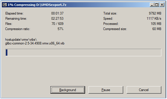 Give it a while to work. Now would be a good time to go get some coffee. When it’s done, you can transfer the 7-zipped files to the VUM server.