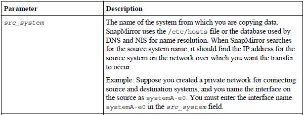 <> Configure /etc/hosts and /etc/snapmirror.conf files on destination filer