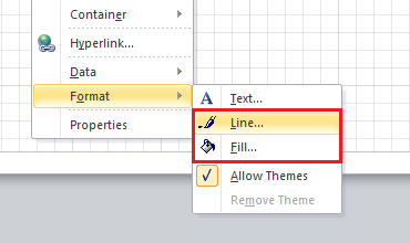 If your normal Right-click > Format > Fill… doesn’t work to add transparency to a Visio object in 2010, try settingimage the same percentage for both Fill and Line.  In my quick testing, it didn’t work with some objects.  I’ve been looking for this functionality for a bit and finally found a reference to the workaround here.