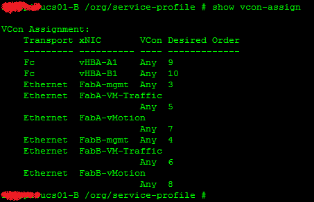 • Virtual Slot 1 –> vCon1 –> Adapter 1 –> VIC 1240