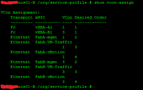 Before creating the Adapter Placement Policy, the default Adapter Placement Policies ended up putting both ESXi management vNICs on Adapter 1 (the VIC 1240) and both vMotion vNICs on Adapter 3 (the VIC 1280).  This is what I’m trying to avoid.  By chance, the VM Traffic vNICs were spread across both Adapters “correctly,” but that could have happened to any vNIC.
