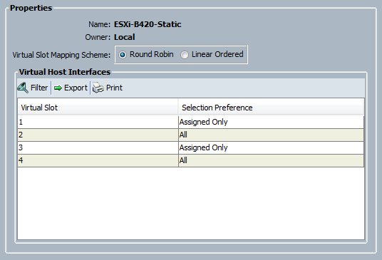 The Selection Preference identifies which vNICs or vHBAs will be mapped onto which adapter.  In this case, I chose Assigned Only because I want the admins to think about where their vNICs are being placed when they create them, rather than just letting them be placed any adapter, possibly to adding a single point of failure to a particular traffic type.  Assigned Only means “only map vNICs/vHBAs to these Virtual Slots if they’re explicitly or statically assigned.