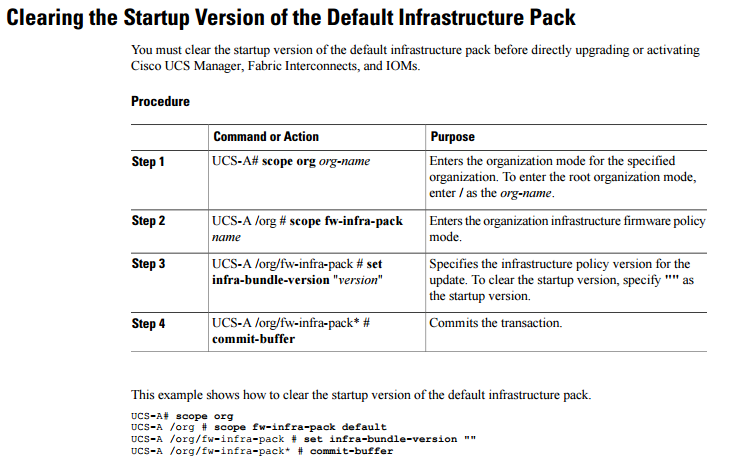 I was performing my first upgrade past 2.2(3) this weekend (upgrading to 2.2(5)) and I came across a small change that took some googling to figure out. Eventually, I found the resolution in the Release Notes. If you’re performing a manual upgrade to 2.2(4b) or later, you have to clear the Startup Version of the Default Infrastructure Pack.  This action is the result of bug fix CSCus73964 and can be found in the Behavior Changes section of the 2.2 Release Notes.